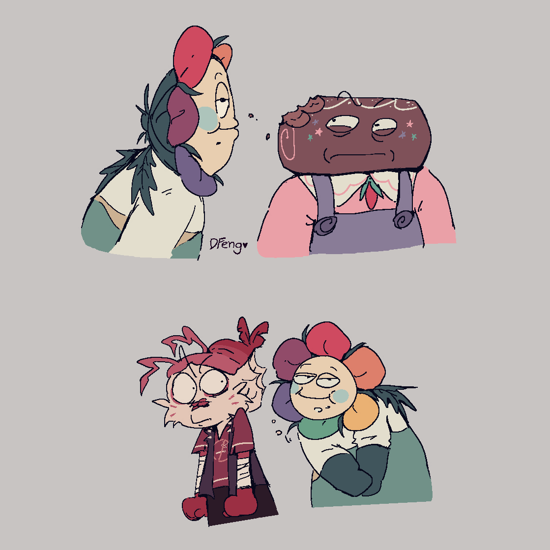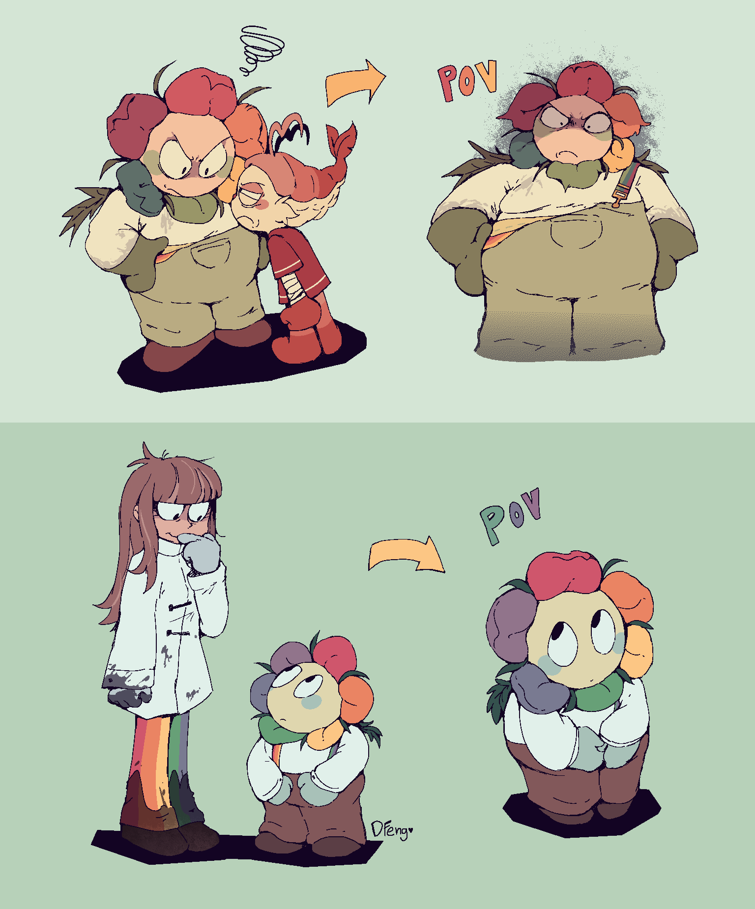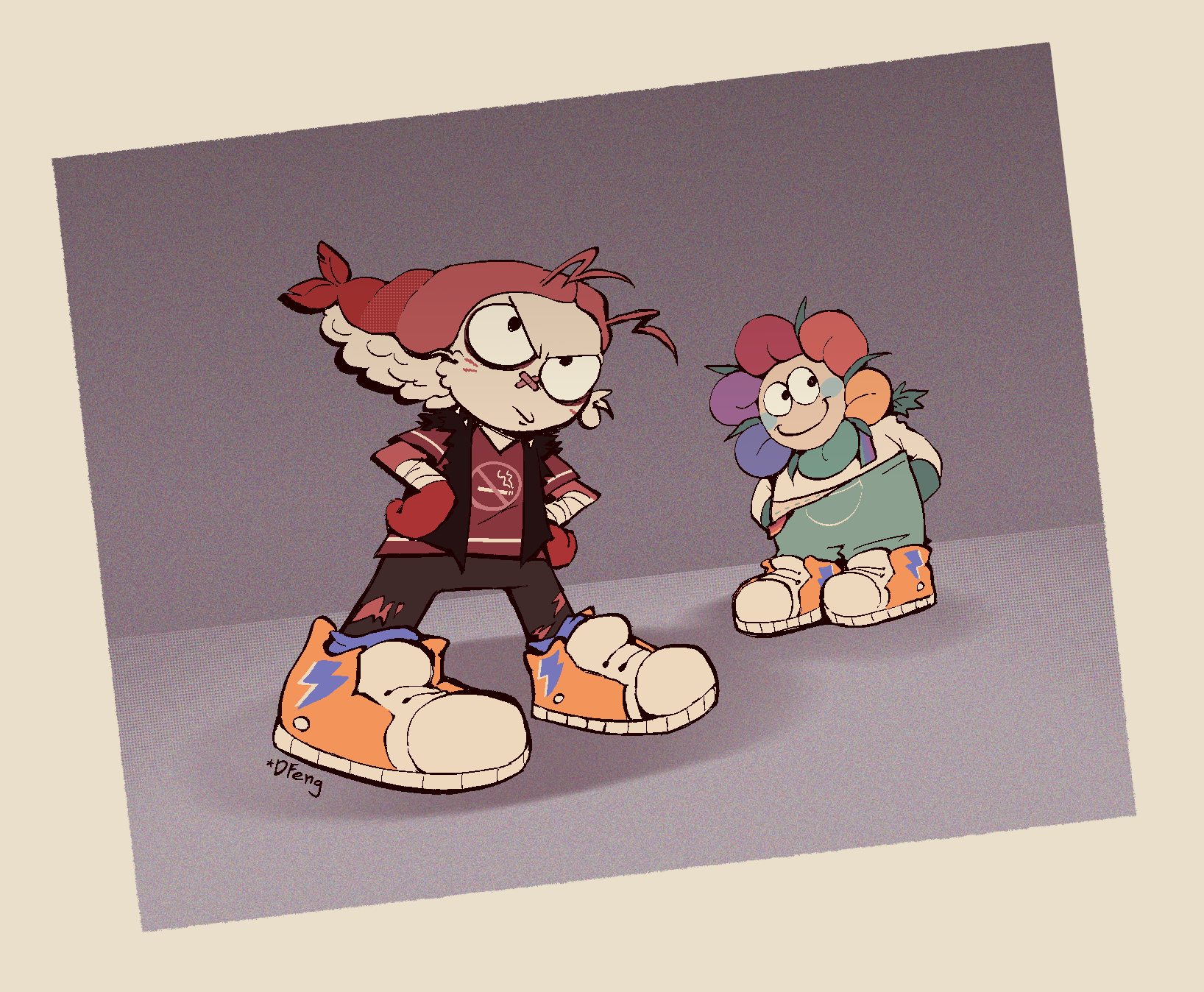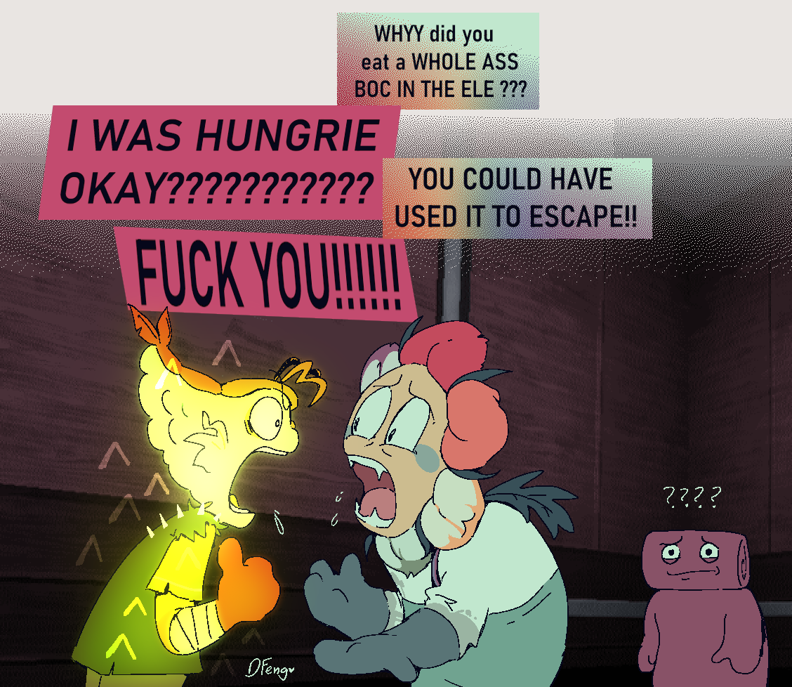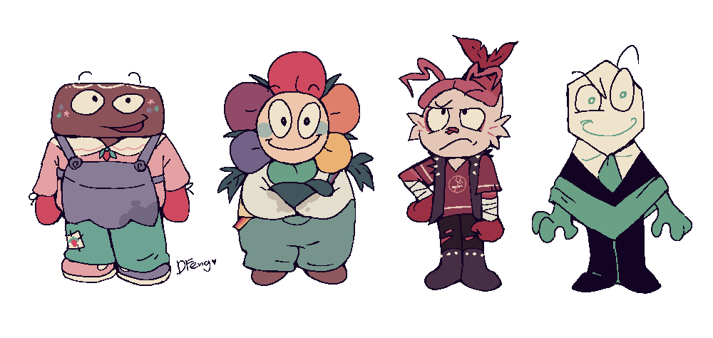 Art I drew to help me brainstorm about these characters. Some of it is concept art, some of it's just goofy “what if” scenarios. I can't guarantee all of it will stay relevant but I think it's worth looking at anyways.
