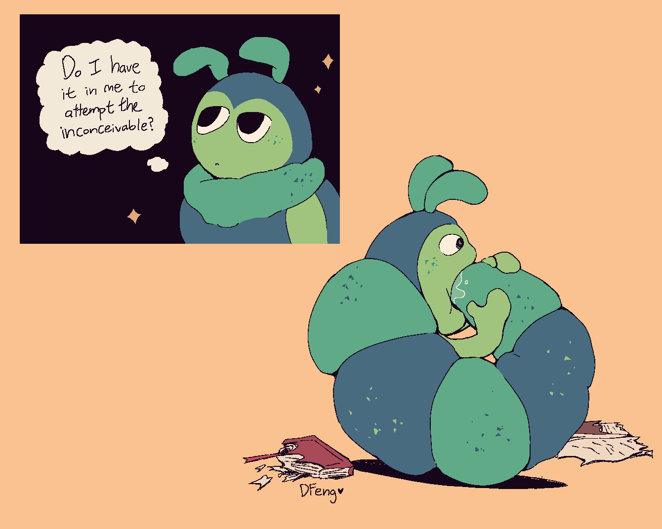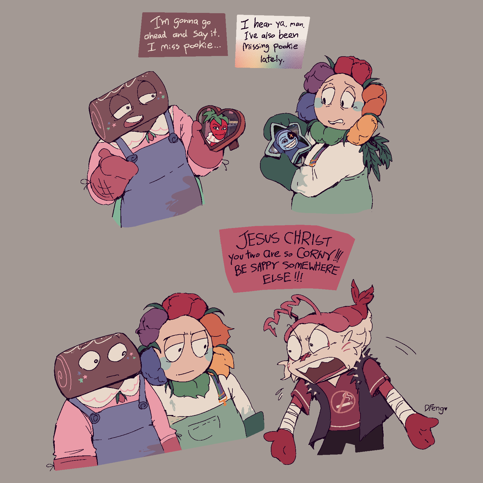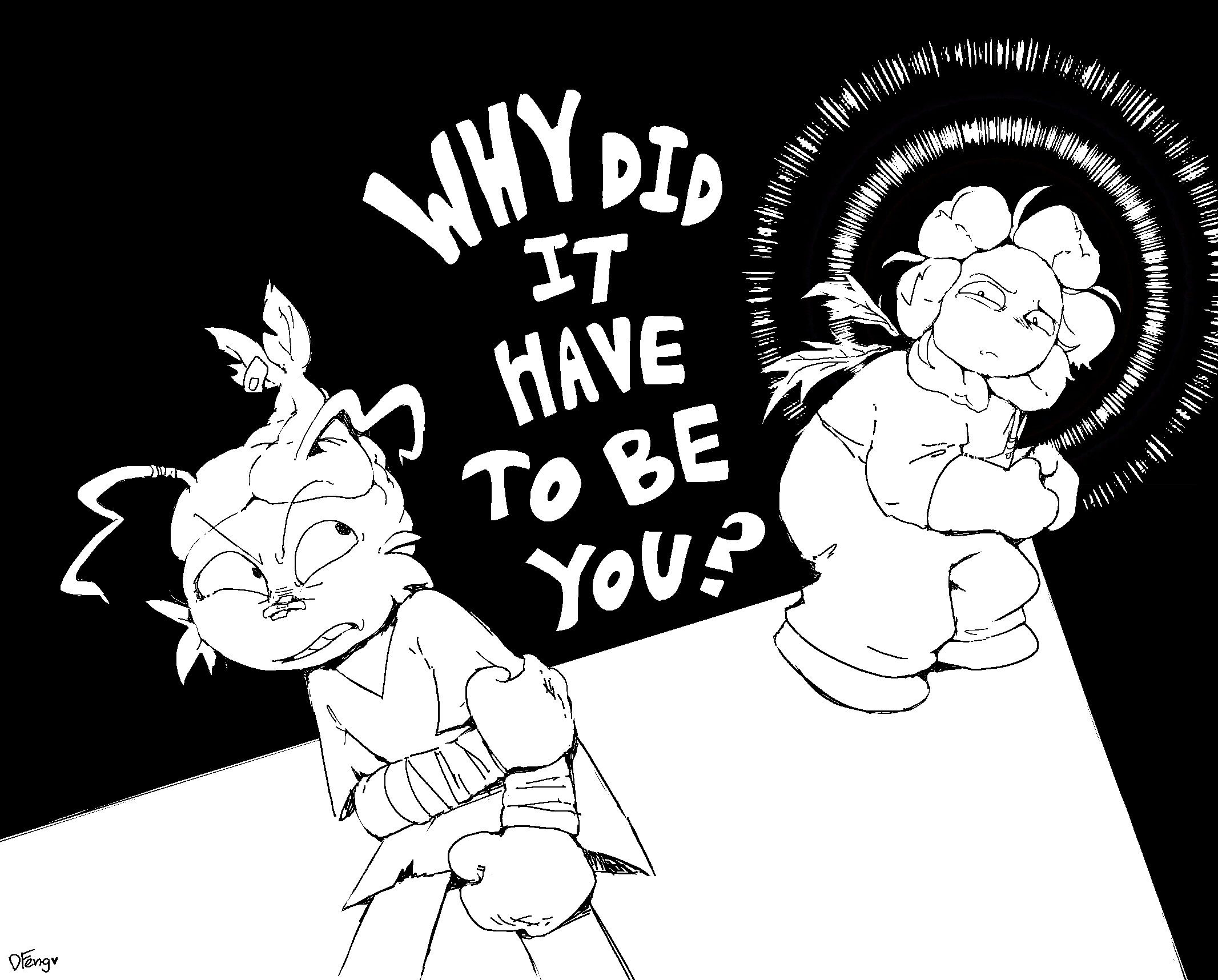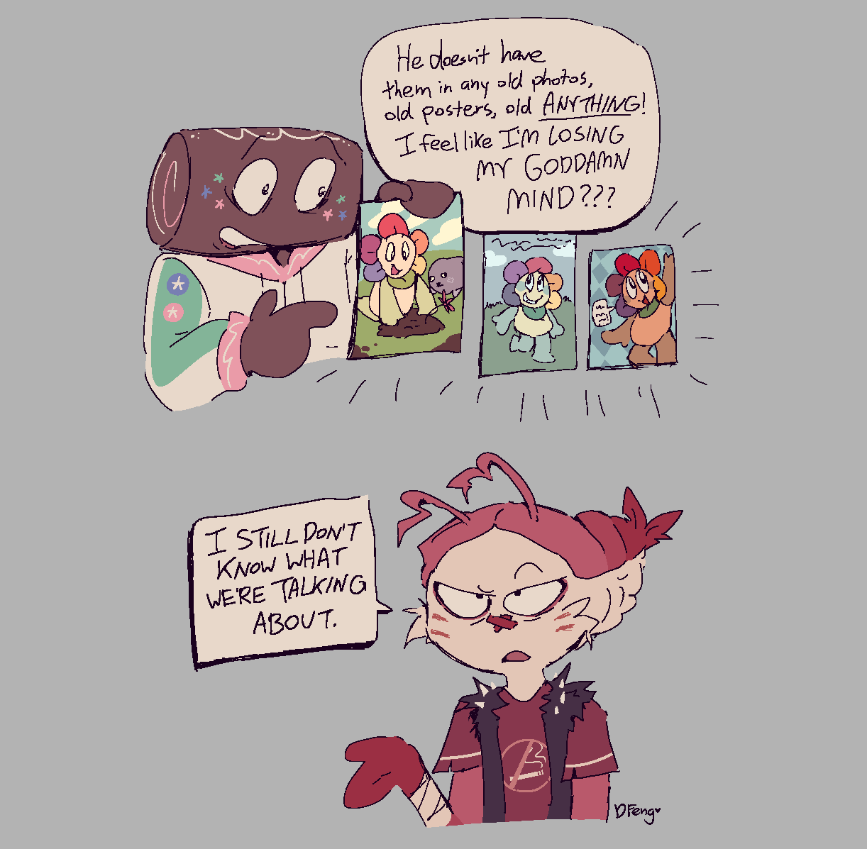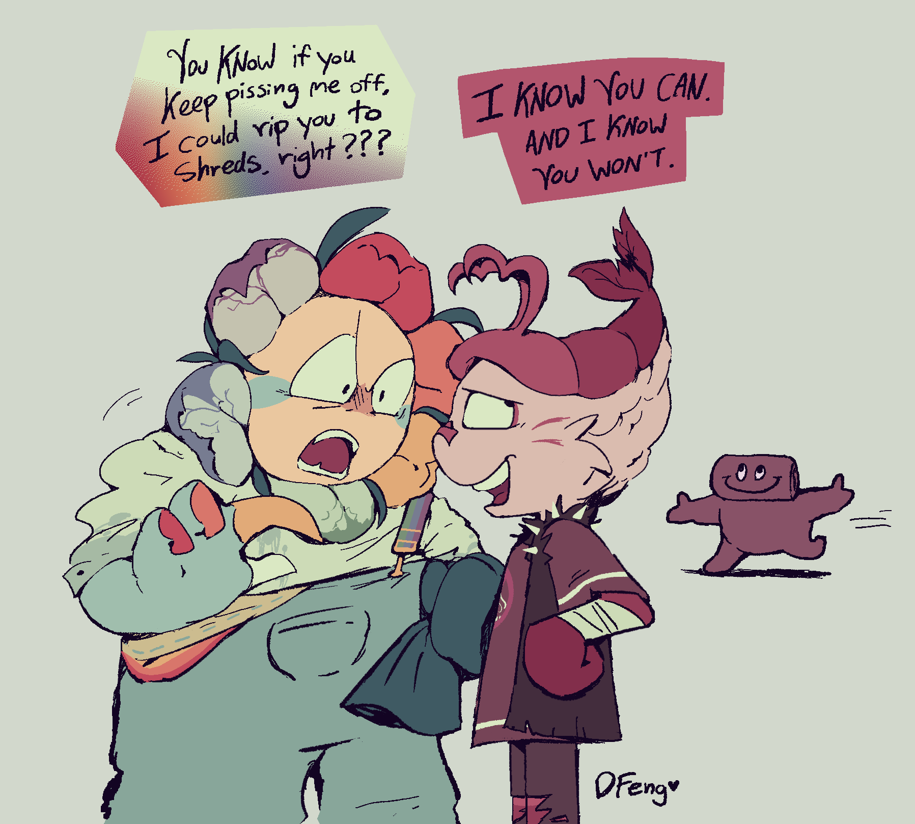Art I drew to help me brainstorm about these characters. Some of it is concept art, some of it's just goofy “what if” scenarios. I can't guarantee all of it will stay relevant but I think it's worth looking at anyways.